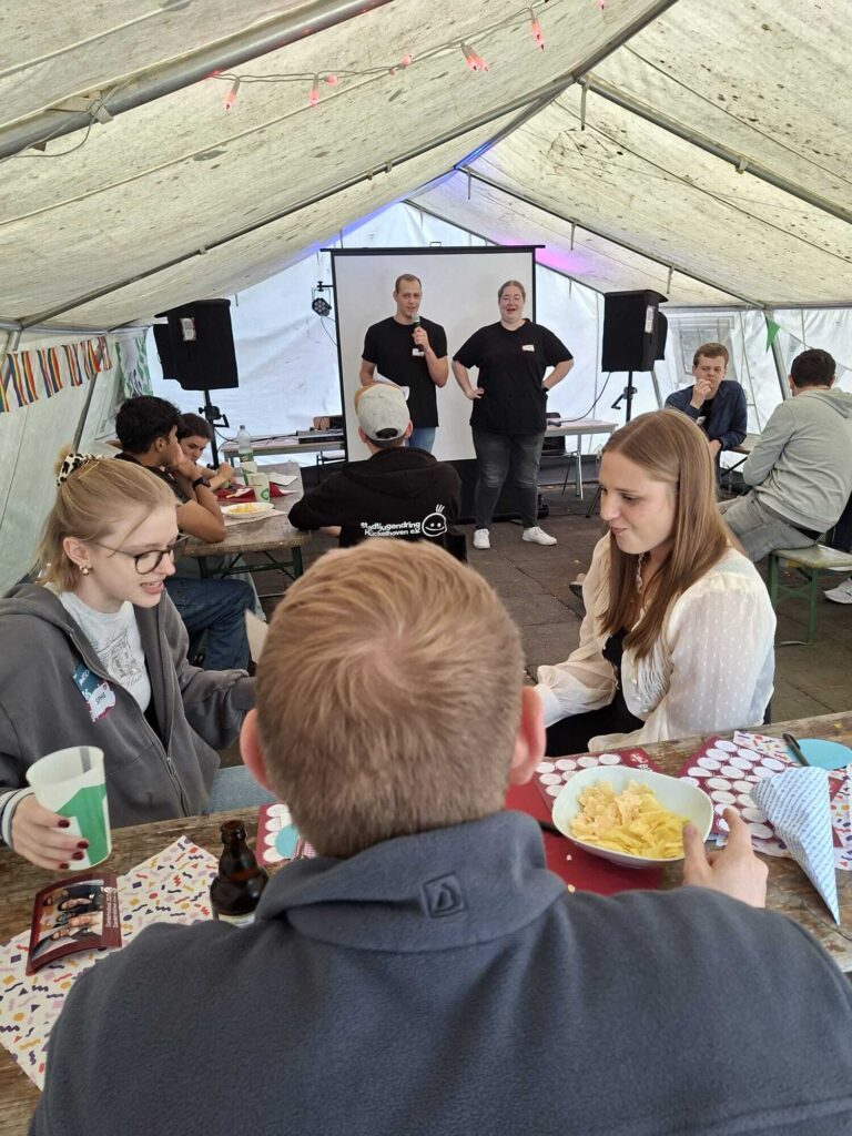 Nach dem Pubquiz wurde der Grill angeschmissen, das Essen vorbereitet, zwischendurch Wikinger Schach gespielt, und die Candybar geplündert.😜 Während das Essen auf dem Grill lecker gebrutzelt hat, wurde das Getränkepong Turnier eröffnet, indem mehrere 2er Teams mit coolen Teamnamen gegeneinander gespielt haben.